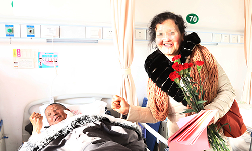 二病区的陈阿婆今年72岁,住院第一天,接过医护人员赠与的康乃馨后,嘴里一直念叨着感谢感谢,我都几十年没收过鲜花了,谢谢你们的关心,看来真选对了医院,我很放心!、